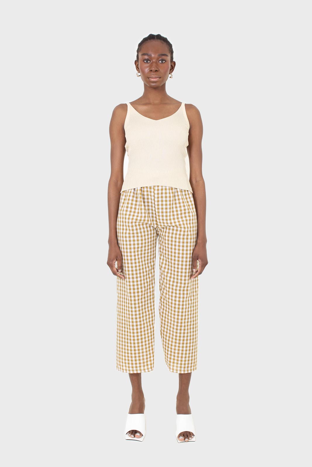 Beige v-neck knit tank