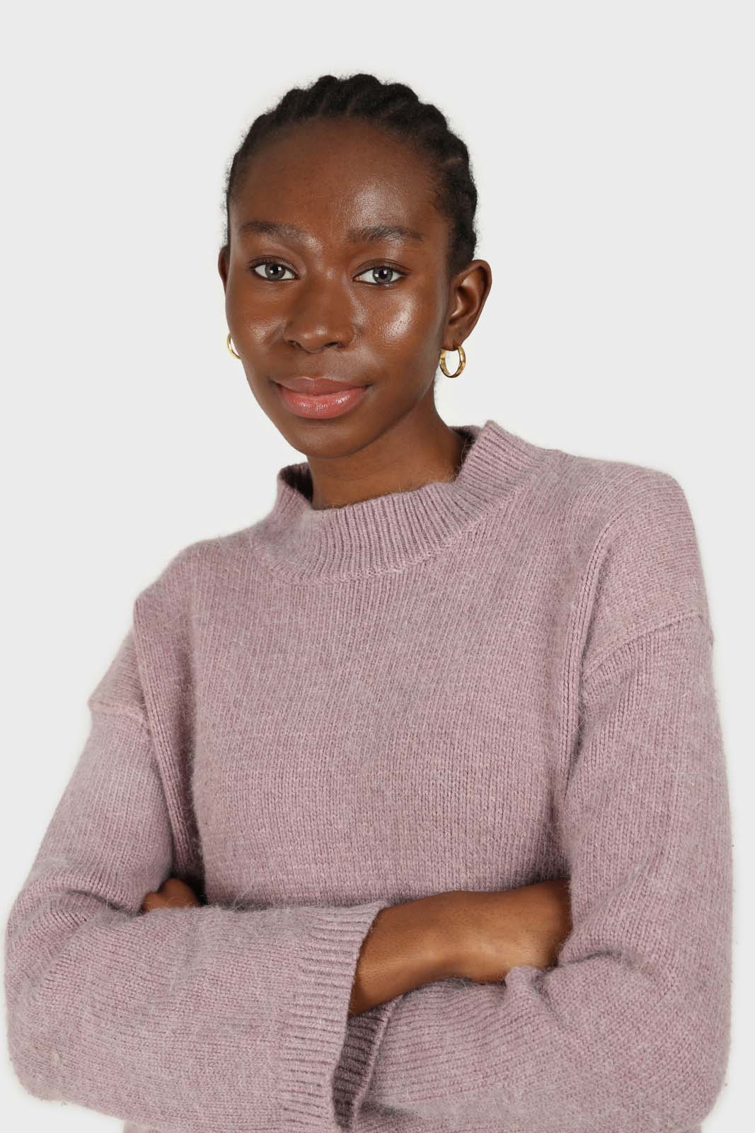 Lilac mock neck open back angora jumper
