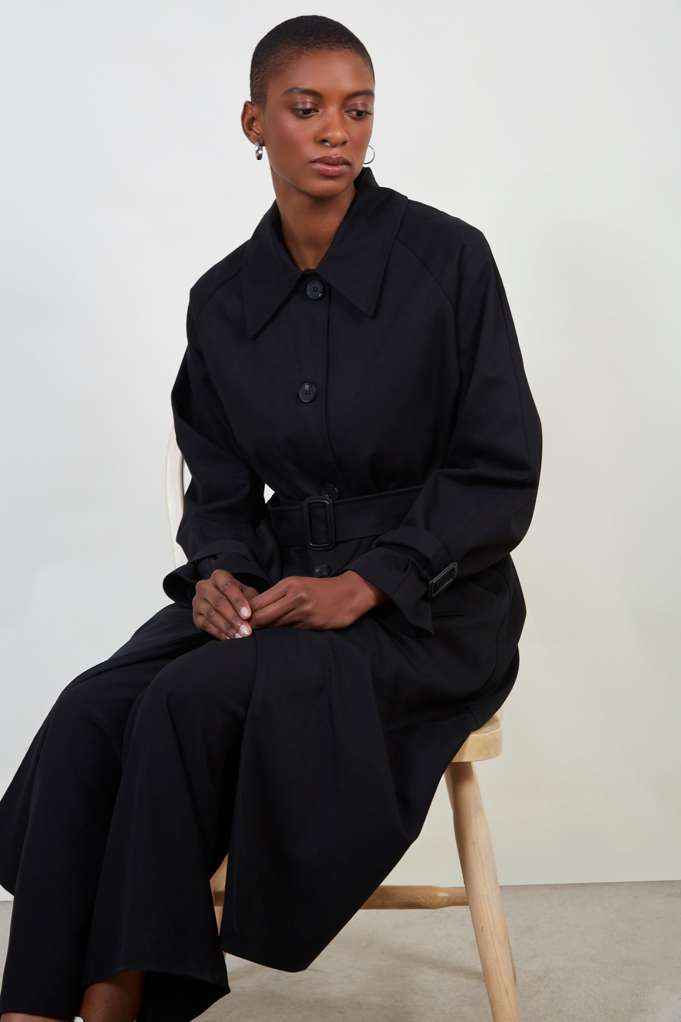Black classic double breasted trench coat