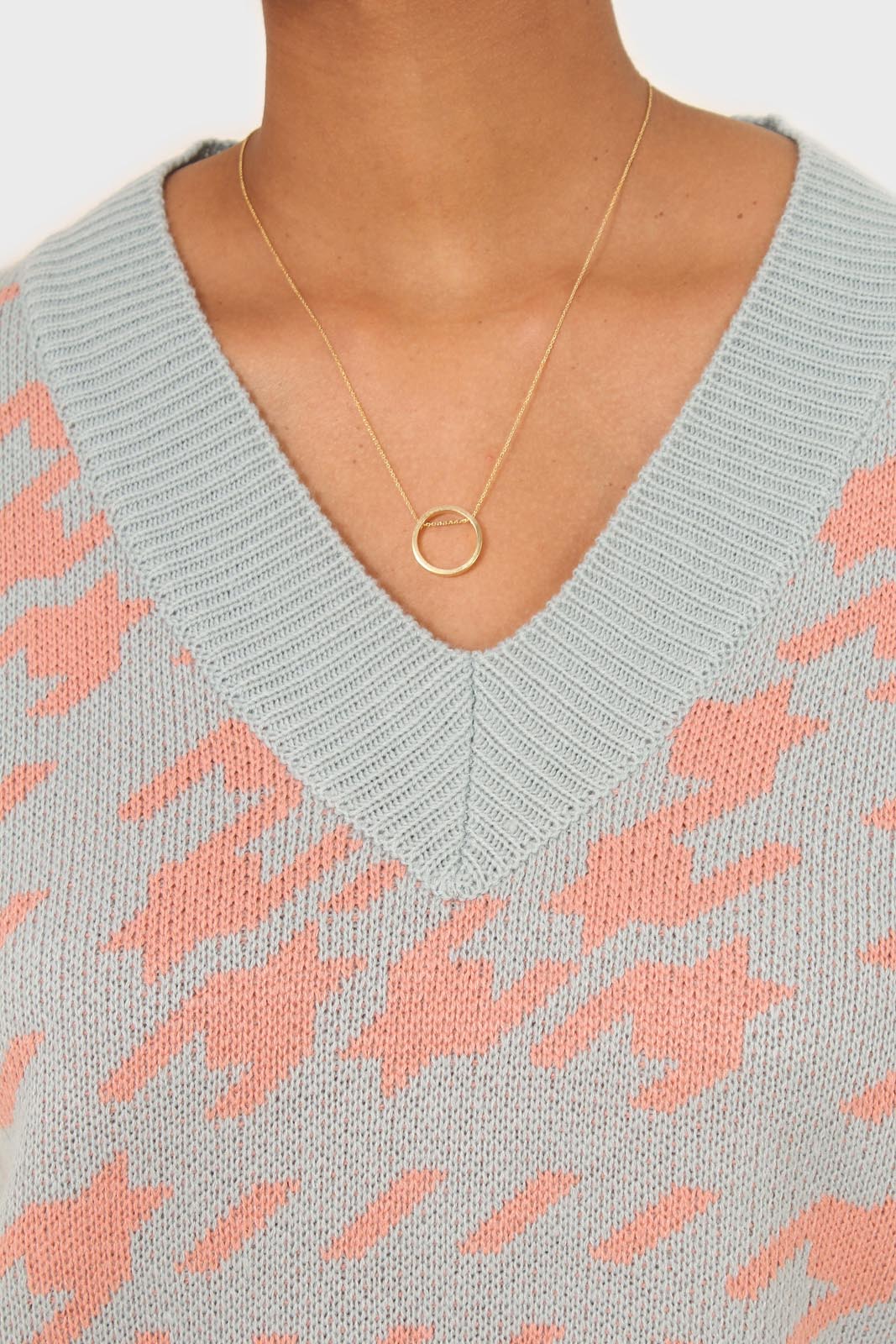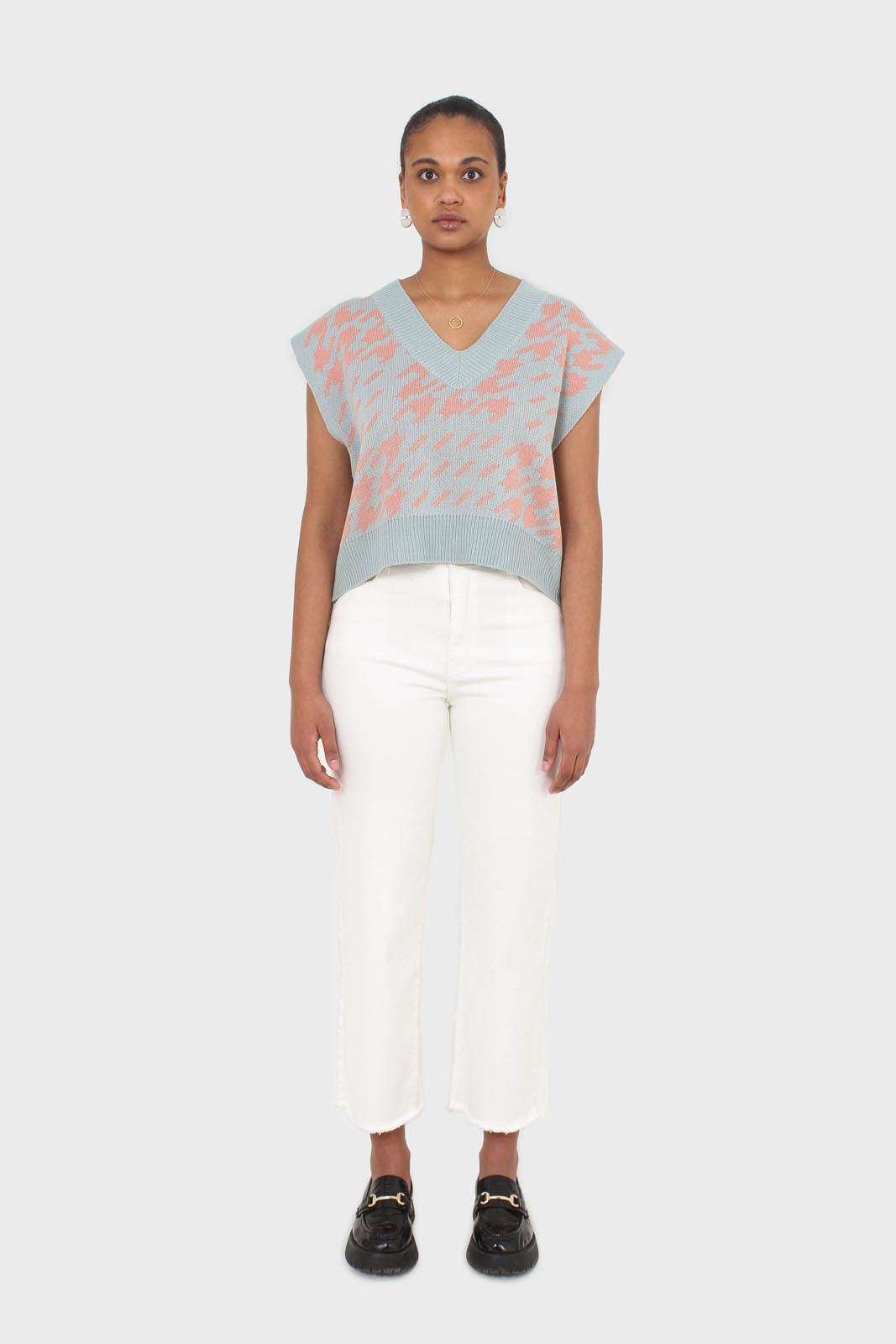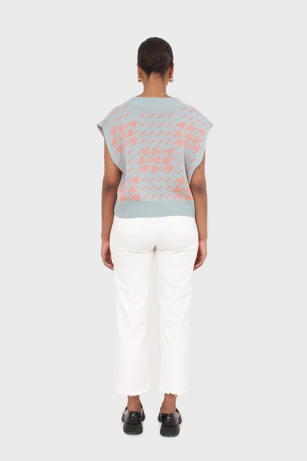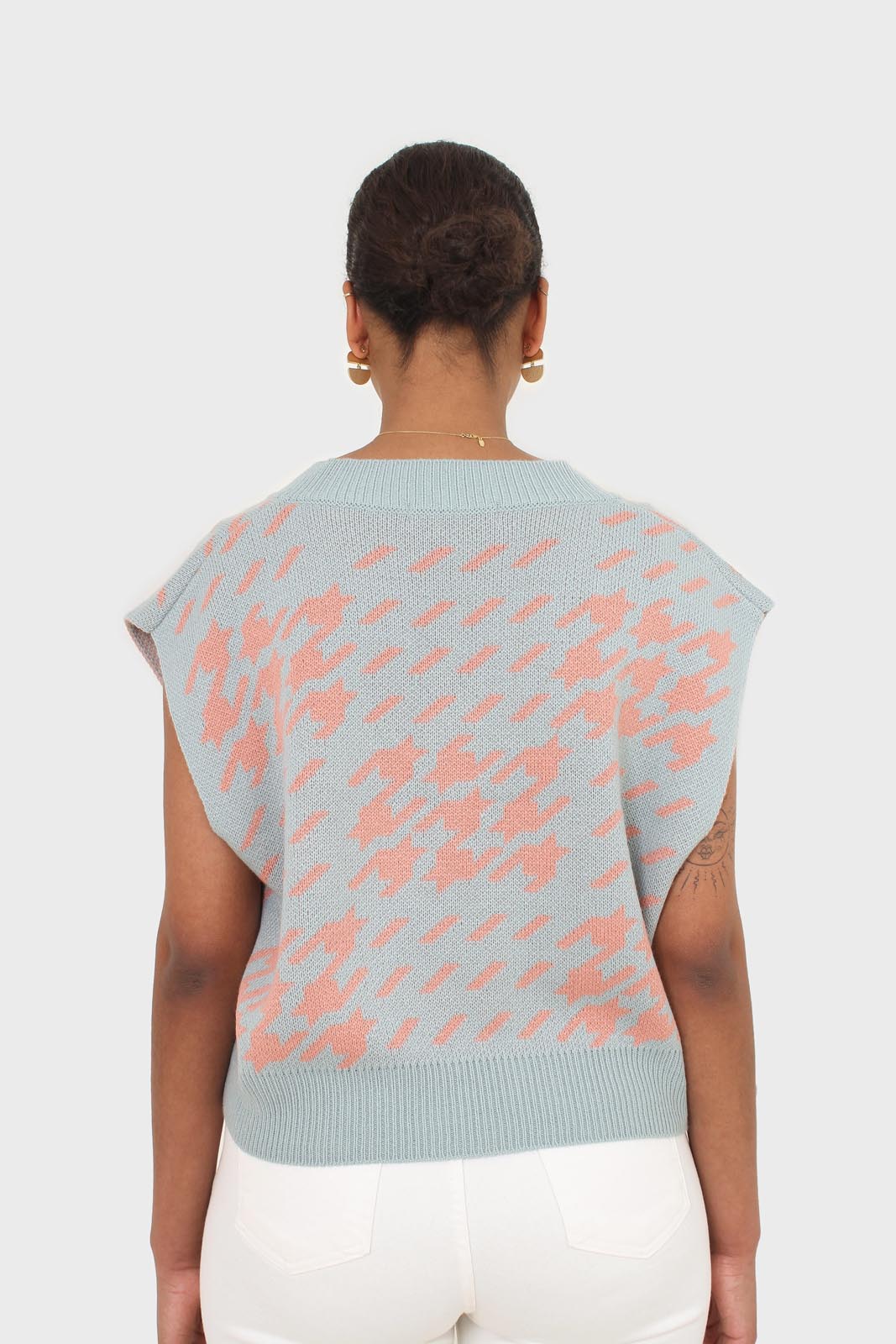 Blue and pink giant houndstooth sweater vest