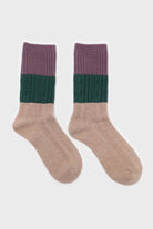 Beige green and purple triple colorblock socks
