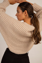 Beige ribbed open cardigan