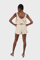 Beige ruffle hem sleeveless romper