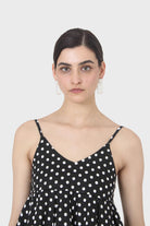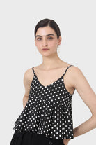 Black and white polka dot spaghetti strap tank