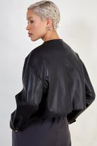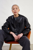 Black vegan leather round collar cropped jacket