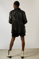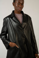 Black vegan leather single breasted blazer