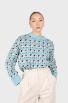 Blue intarsia sheep crew neck jumper
