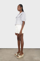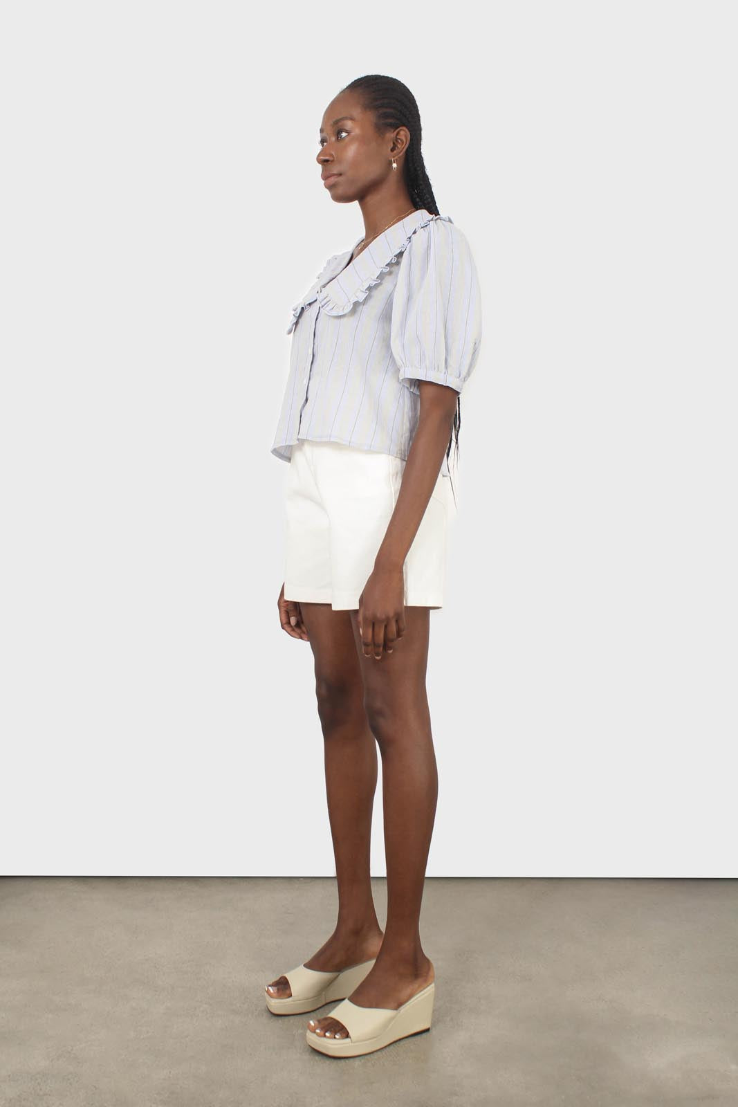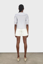 Blue striped oversized collar blouse
