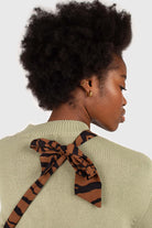 Brown and black zebra print tie strap tote
