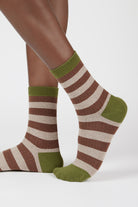 Brown beige and khaki striped socks