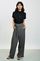 Charcoal asymmetric tie up trousers