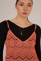 Coral lace spaghetti strap tank