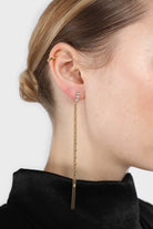 Cubic zirconia long gold chain drop earrings