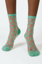 Green sheer tiny flower socks