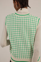 Ivory and green box check sweater vest