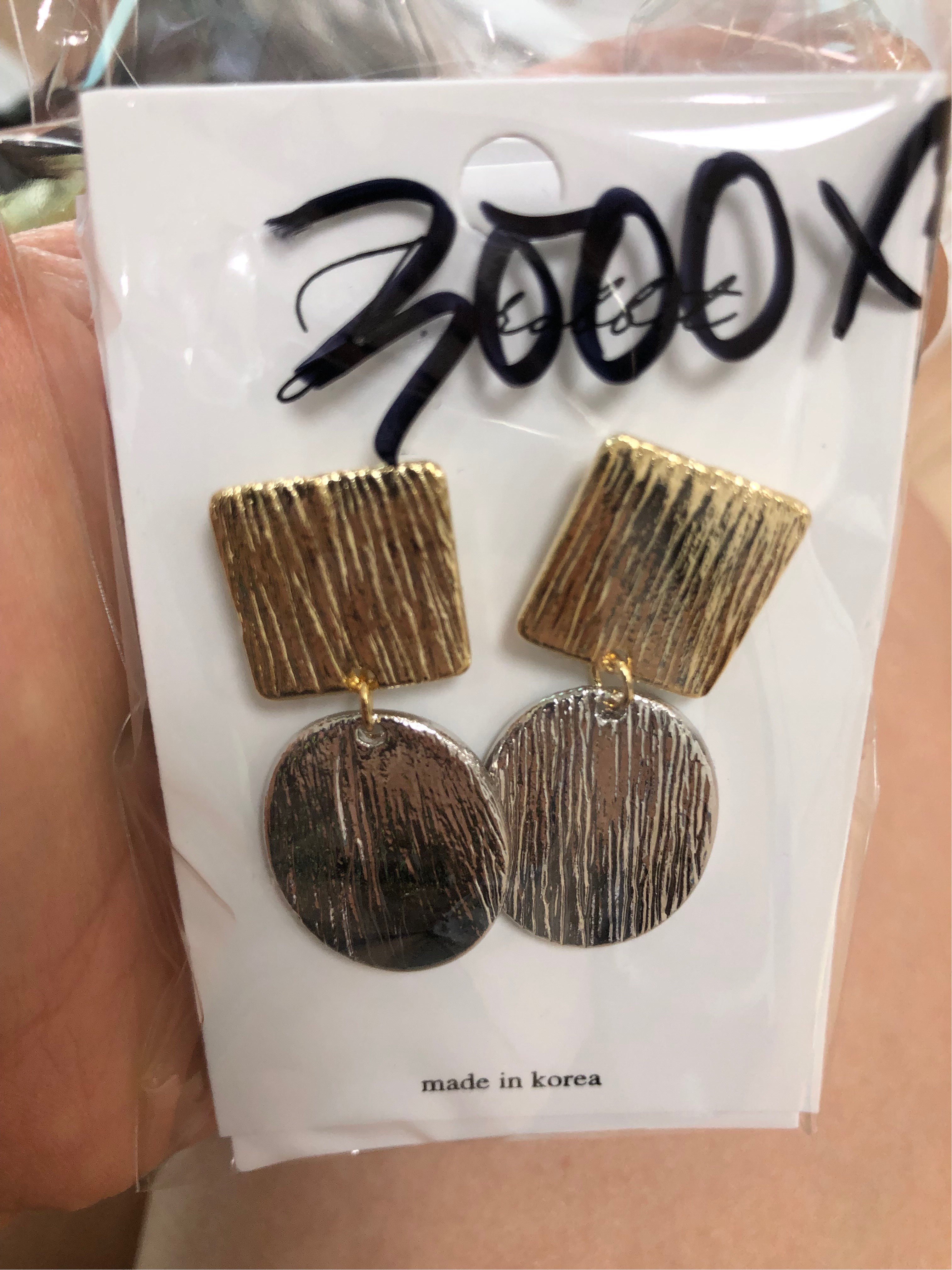 Large gold square and silver circle brushed earrings