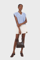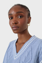 Light blue and white varsity cable sweater vest