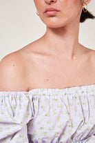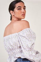 Lilac floral ruched off shoulder top