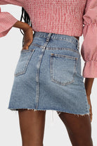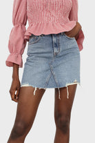 Mid blue denim ripped hem skirt