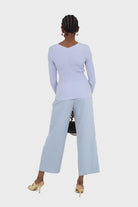 Mid blue wide leg tab waist smart trousers
