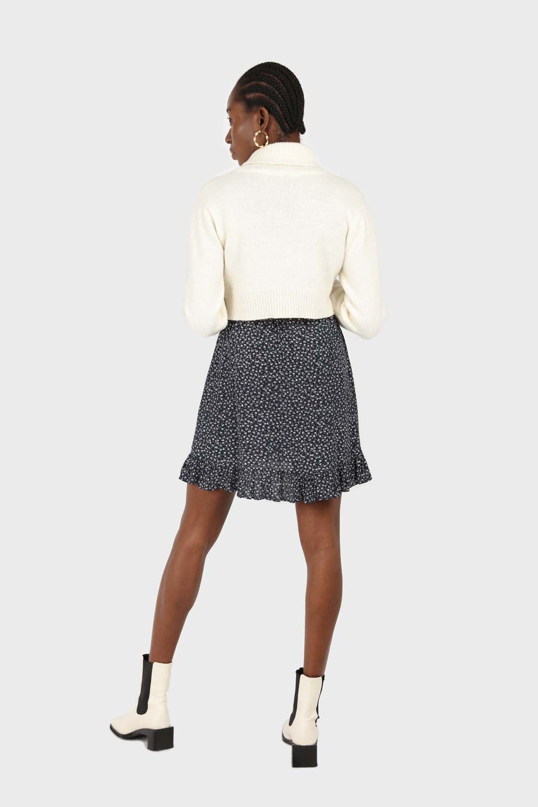 Navy and white floral ruched bodice mini dress