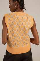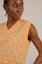 Orange and brown mod floral sweater vest