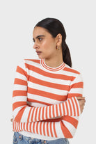 Orange and white breton stripe long sleeved top