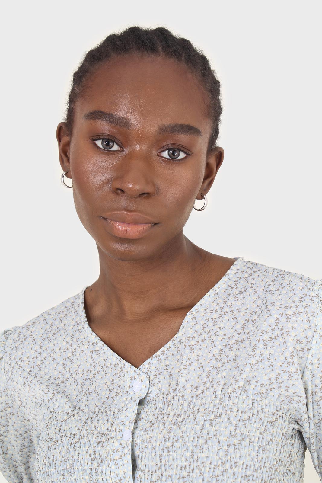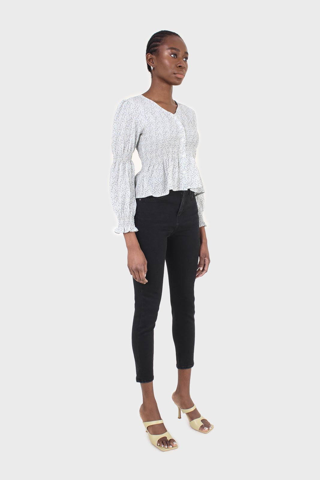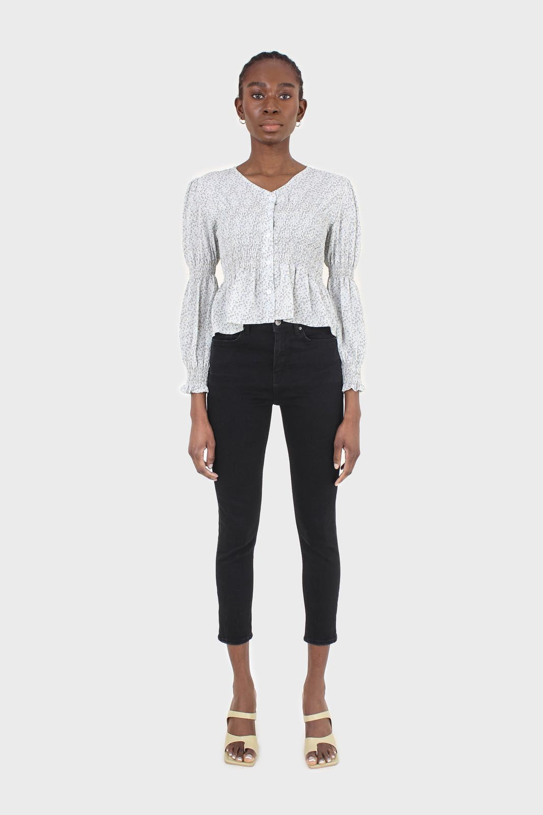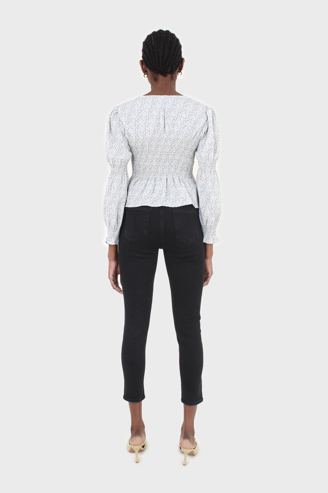 Pale blue tiny floral smocked blouse