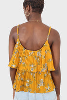 Rust orange and navy floral print off shoulder top
