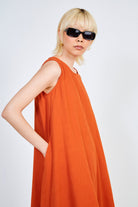 Rust orange linen blend tank midi dress