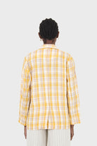 Yellow and brown checked linen blazer